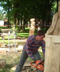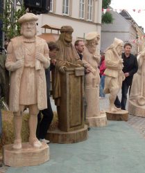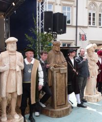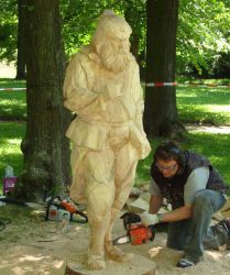 Durchführung Bildhauersymposium „ 5 Lößnitzer Meister“ im Lößnitzer Stadtpark vom 14.6. – 20.6.2010. Die Teilnehmer Robby Schubert, Tobias Michael, Jesko Lange, Friedhelm Schelter und Detlef Jehn gestalten je einen historischen Lößnitzer Meister.